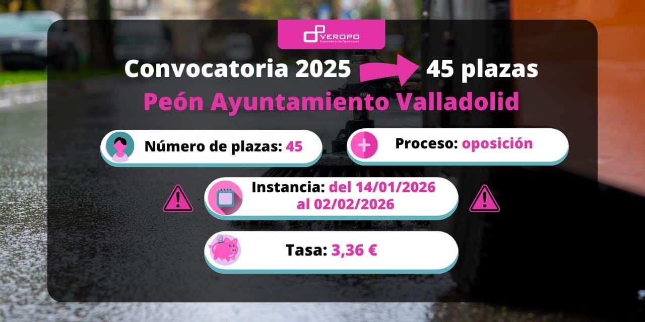 ¿Aún no has comenzado con la preparación? ¡No esperes más! En Veropo tenemos varios grupos en marcha para preparar la oposición de Peón del Ayuntamiento de Valladolid. Además, tenemos previsión para abrir grupos nuevos de Peón, tal y como os contamos aquí. ¡Contacta con nosotros y vamos a por esa plaza!