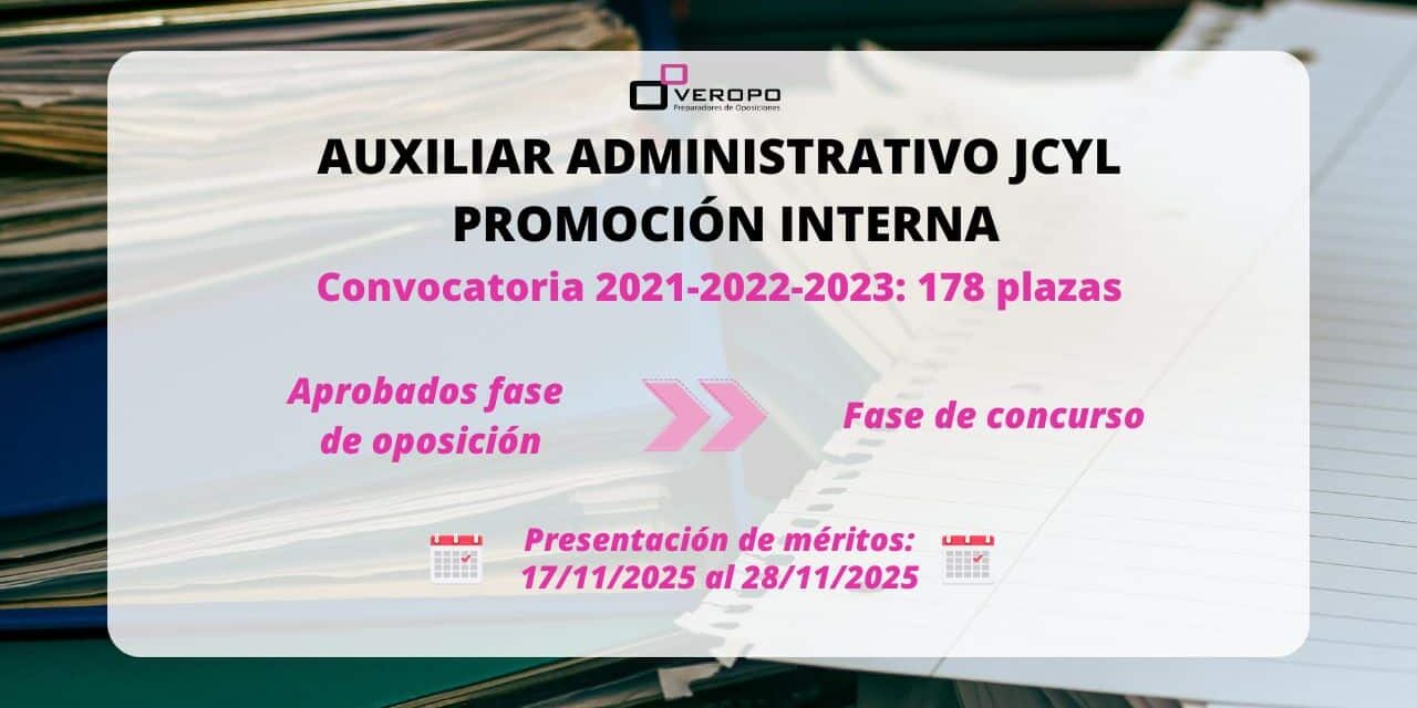 Aprobados fase de oposición y plazo para presentar méritos de Auxiliar Administrativo JCYL promoción interna