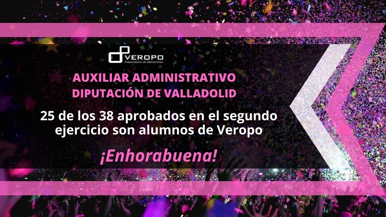 La Diputación de Valladolid ha publicado las calificaciones del segundo ejercicio de Auxiliar Administrativo de la Diputación de Valladolid y de los 38 aprobados, 25 alumnos de Veropo Vísperas de navidad, vísperas de aprobados. ¡Hoy son 25 alumnos Veropo! En este caso las buenas noticias nos llegan al conocer los resultados del segundo ejercicio de…