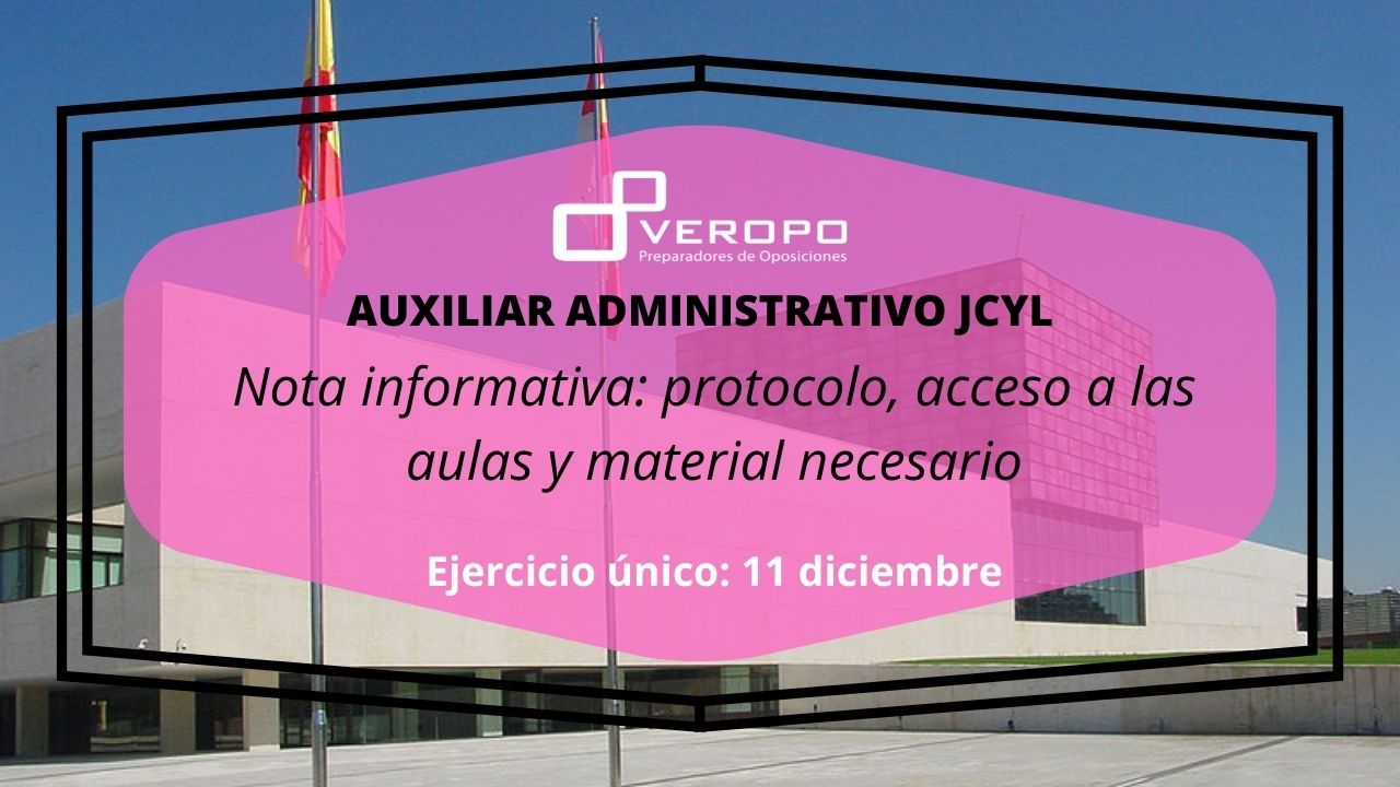 La JCYL ha publicado una nota informativa indicando el protocolo, acceso a las aulas y material necesario para la realización del ejercicio único de Auxiliar Administrativo El día 11 de diciembre es el día más repetido en las conversaciones de los opositores y un día muy importante para todos. ¡Tenemos novedades al respecto! Y es…