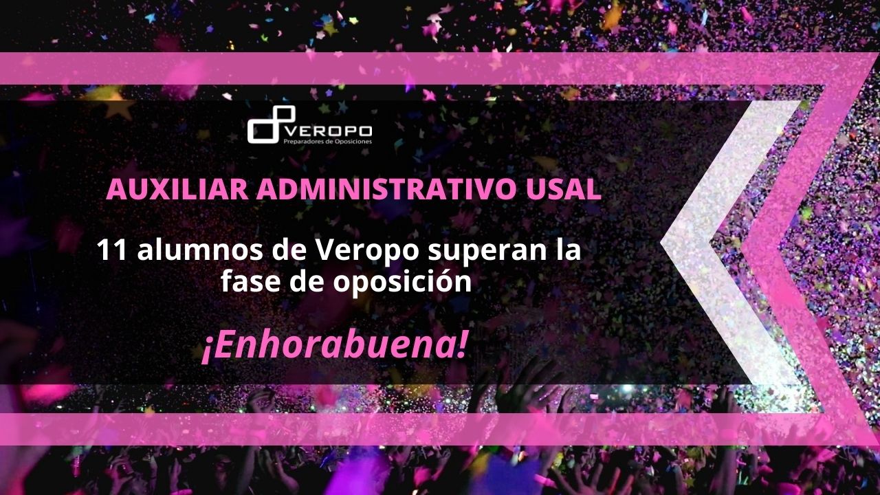 Un total de 66 alumnos de Veropo superan el primer ejercicio de Auxiliar Administrativo del Ayuntamiento de Salamanca  ¡Grandísimas noticias! Justo un mes después de la realización del primer ejercicio de Auxiliar Administrativo del Ayuntamiento de Salamanca hemos conocido la publicación del listado de aprobados. Si te presentaste al examen el pasado 16 de octubre…¡Ya…