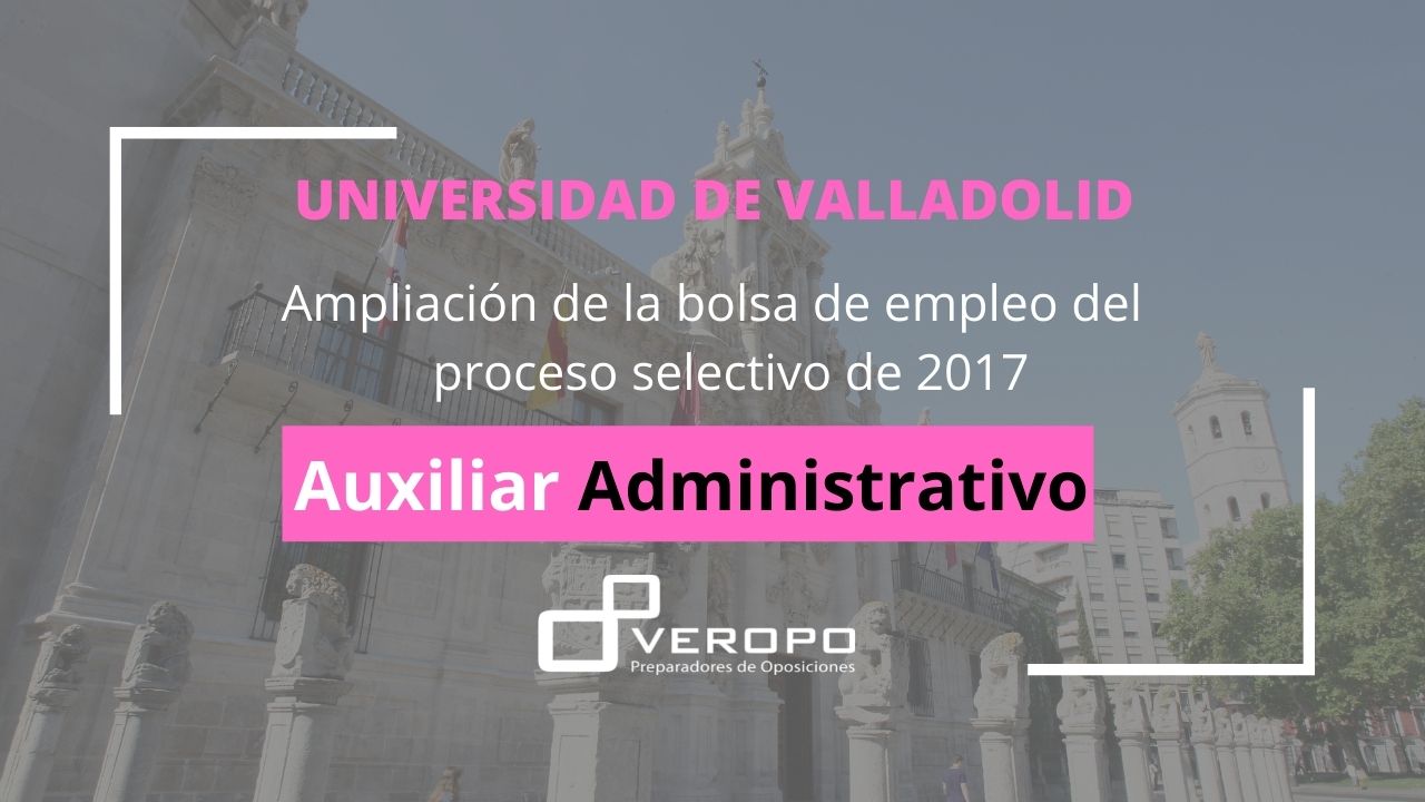 La Uva amplía de nuevo la bolsa de empleo de Auxiliar Administrativo referente a la Convocatoria 2017 ¡Buenas noticias para los que participasteis en la Convocatoria 2017 de Auxiliar Administrativo de la Uva! Ya os comentamos en junio que «por falta de aspirantes» se había ampliado la bolsa de empleo de este proceso selectivo. Pues…