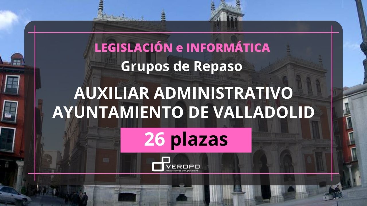 En Veropo tenemos grupos de nivel repaso para limar y rematar todos los detalles de informática y legislación para la convocatoria de Auxiliar Administrativo del Ayuntamiento de Valladolid Dicen que el que la sigue… la consigue. Nosotros decimos el que estudia y repasa… ¡Tiene plaza! Por eso tenemos grupos de nivel repaso para matizar la…