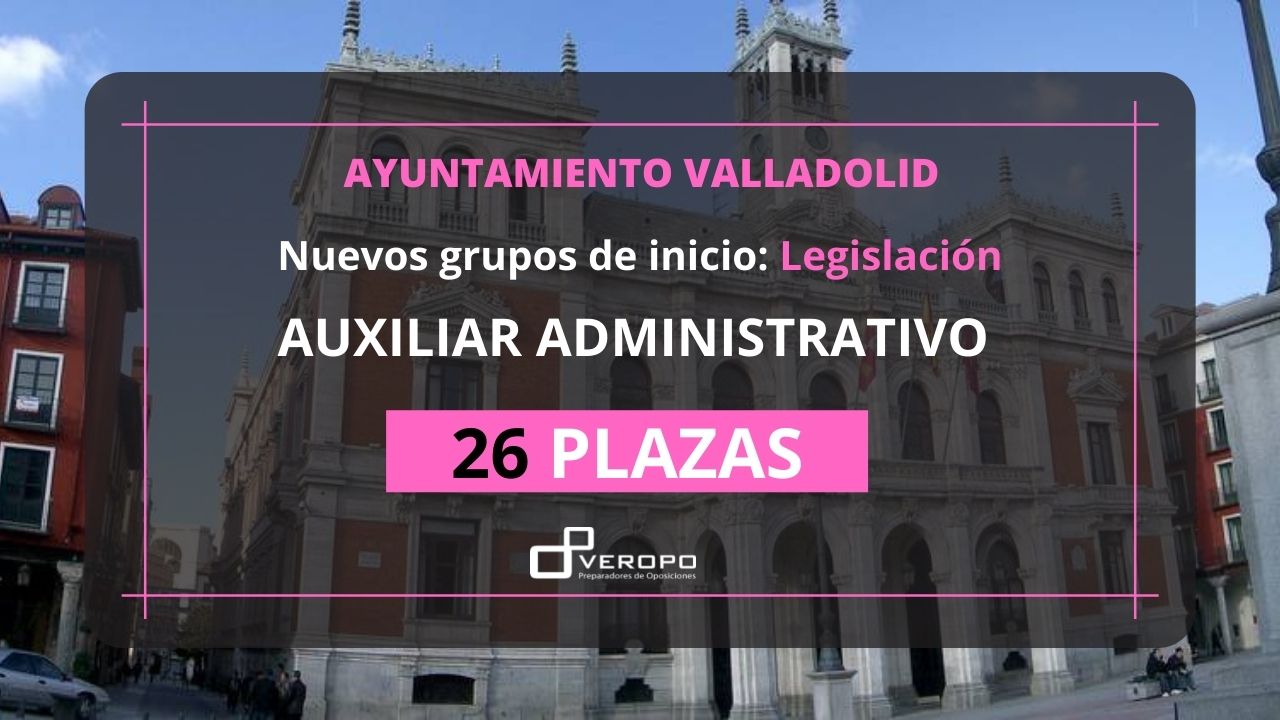Dos grupos nuevos para comenzar la preparación de la legislación de Auxiliar Administrativo del Ayuntamiento de Valladolid y una única decisión ¿mañana o tarde? 26 será tu nuevo número. Y es que estas son las plazas pendientes de la Convocatoria de Auxiliar Administrativo del Ayuntamiento de Valladolid. 26 oportunidades para conseguir el puesto de trabajo…