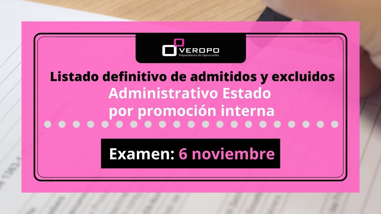 El examen se realizará el próximo 6 de noviembre a las 10:00 horas en las sedes establecidas El 6 de noviembre es la fecha que se eligió para llevar a cabo las pruebas para Administrativo Estado Promoción Interna y hoy ya tenemos el listado definitivo con todos los aspirantes admitidos y excluidos. Esto significa que…