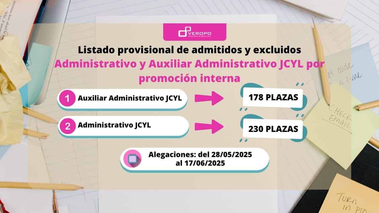 Listado provisional de admitidos y excluidos de Administrativo y Auxiliar Administrativo JCYL por promoción interna