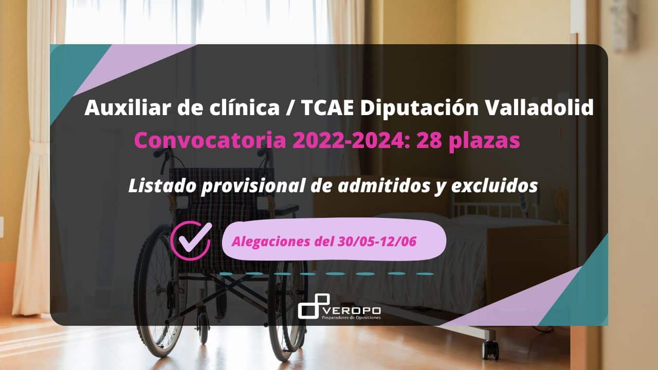 Listado provisional de admitidos y excluidos de TCAE / Auxiliar de Clínica Diputación de Valladolid