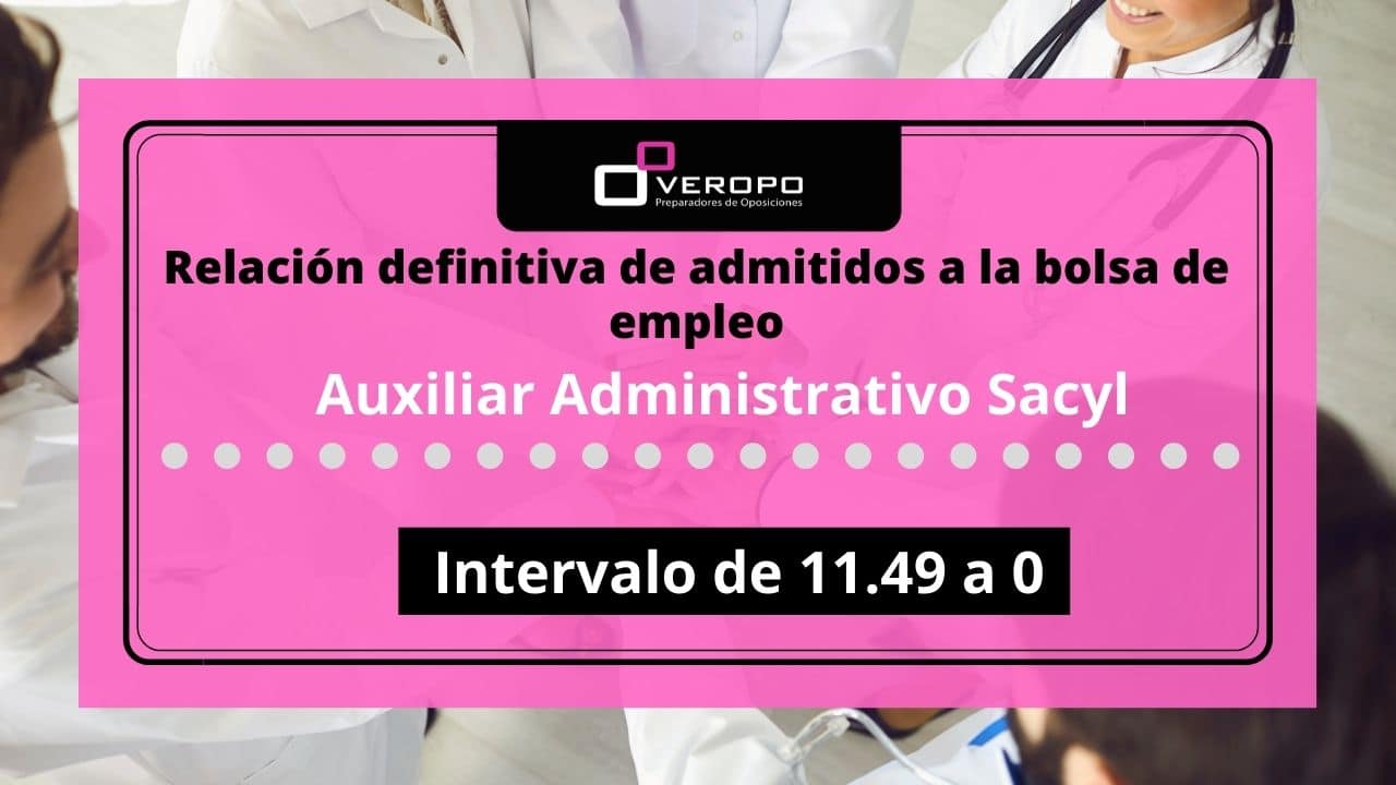 Sacyl ha publicado la relación definitiva de candidatos a la bolsa de empleo de Auxiliar Administrativo del intervalo de 11,49 a 0 puntos Ayer, se publicó la relación definitiva de personas candidatas incluidas en la bolsa de empleo de Auxiliar Administrativo de Sacyl. Esta publicación se refiere al nuevo intervalo de puntuación en la bolsa…