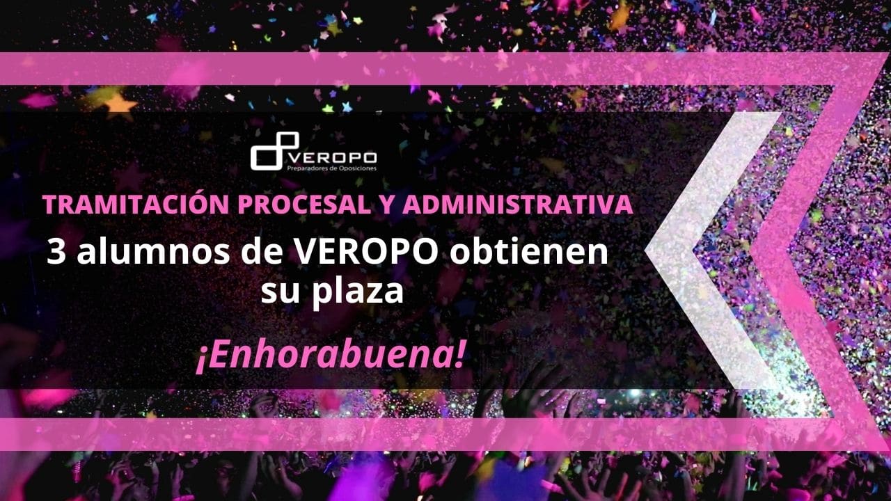 3 alumnos de Veropo obtienen su plaza referente al proceso selectivo 2017 en Tramitación Procesal y Administrativa Estábamos a la espera tras la publicación de la relación provisional de méritos de la Convocatoria de 2.656 plazas de Tramitación Procesal y Administrativa. Hoy es un día de enhorabuena, y es que el Tribunal calificador único de…