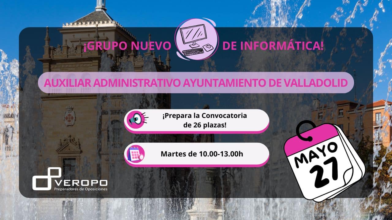 ¡Tras el lleno absoluto del grupo anterior abrimos uno nuevo de informática de Auxiliar Administrativo del Ayuntamiento de Valladolid que empezará el próximo martes 27 de mayo! ¡Qué alegría, qué alboroto! ¡Otro grupo lleno en Veropo! Y es que aquí no para el ritmo y hemos tenido otro lleno absoluto en nuestro grupo de informática…