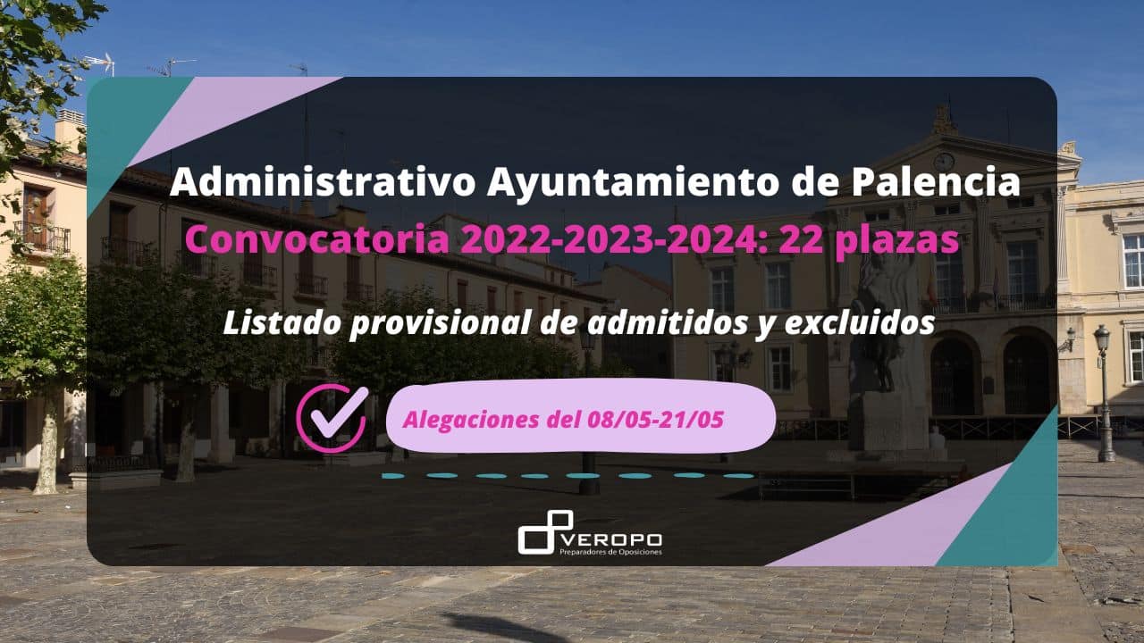El Ayuntamiento de Palencia publica el listado de admitidos y excluidos para la Convocatoria de 22 plazas de Administrativo  ¡Noticias de nuestra ciudad vecina, Palencia! ¿Echaste la instancia para participar en la Convocatoria de 22 plazas como Administrativo? ¡Esto te interesa! Y es que ya tenemos aquí los listados provisionales de admitidos y excluidos para participar…