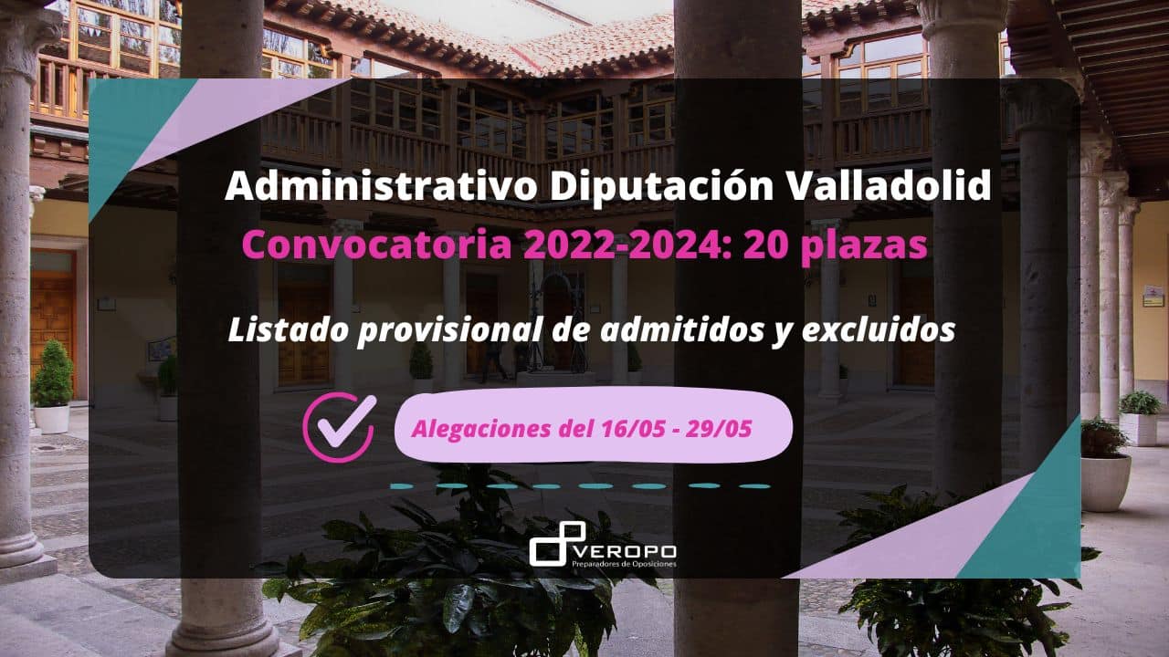 Listado provisional de admitidos y excluidos de Administrativo Diputación de Valladolid