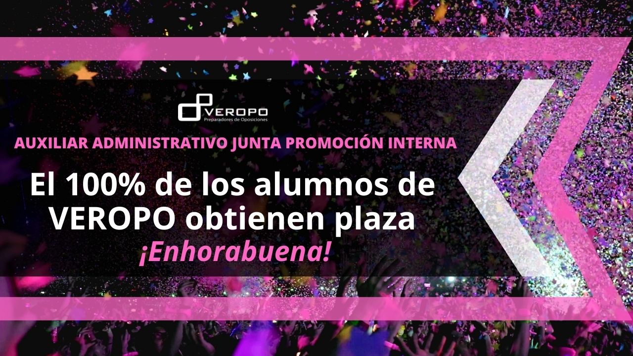 El 100% de los alumnos de Veropo obtienen plaza como Auxiliar Administrativo Junta por promoción interna ¡Grandes noticias! Empezamos la semana con la publicación del listado de los opositores que han obtenido plaza como Auxiliar Administrativo de la Junta por promoción interna referente a la Convocatoria 2017-18 de 60 plazas.  Fue en diciembre cuando conocimos…
