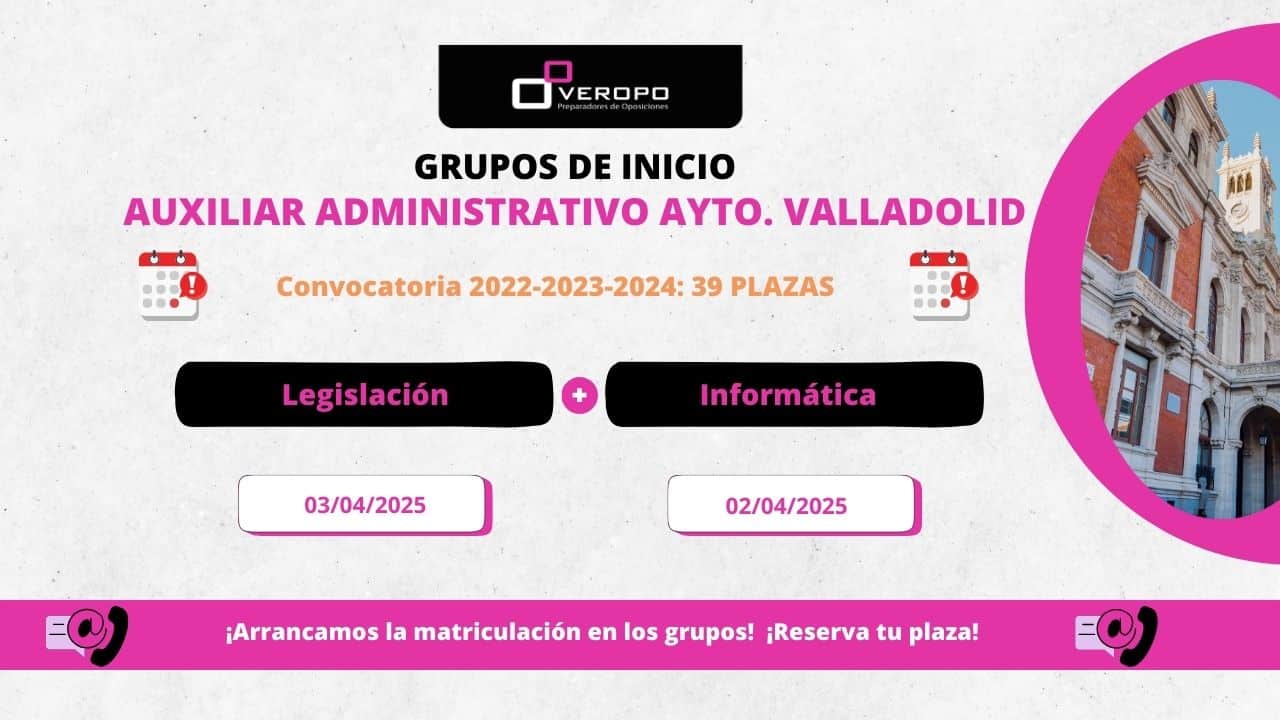 ¡Empezamos grupos de inicio de Auxiliar Administrativo Ayuntamiento de Valladolid!