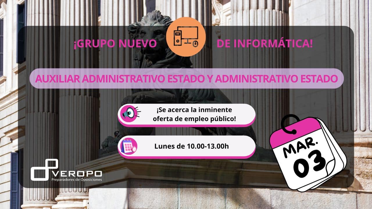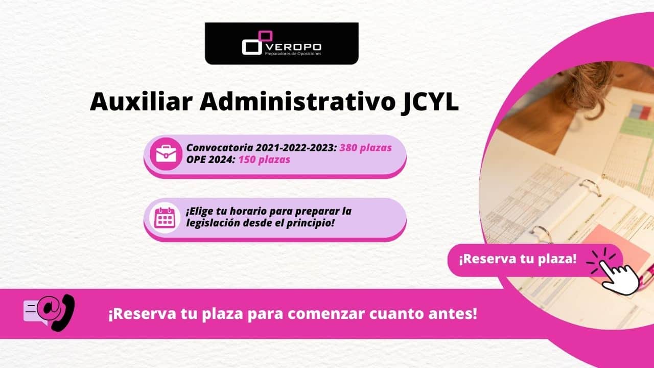 Elige tu horario preferido y prepara la legislación de Auxiliar Administrativo JCYL con los grupos nuevos ¡Reserva tu plaza!  ¡Vamos con más oportunidades! ¿Sabías que hay convocadas un total de 380 plazas como Auxiliar Administrativo en la JCYL y 150 plazas más pendientes de la OPE 2024? ¡Una ocasión que hay que aprovechar! En Veropo…