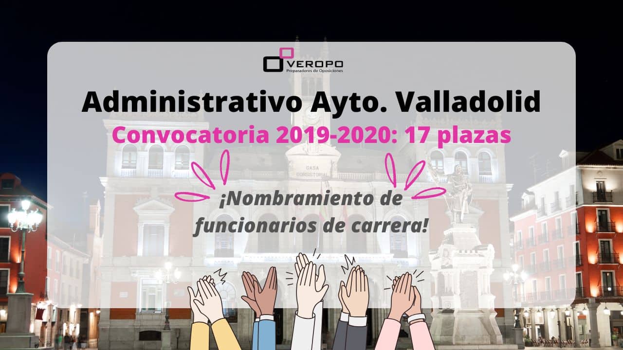 El Ayuntamiento de Valladolid publica el nombramiento de funcionarios de carrera y los destinos de las personas que han logrado plaza como Administrativo turno libre y promoción interna Llega el final de otro bonito camino. El Ayuntamiento de Valladolid ha publicado el nombramiento como funcionarios de carrera de la Convocatoria de 17 plazas como Administrativo…