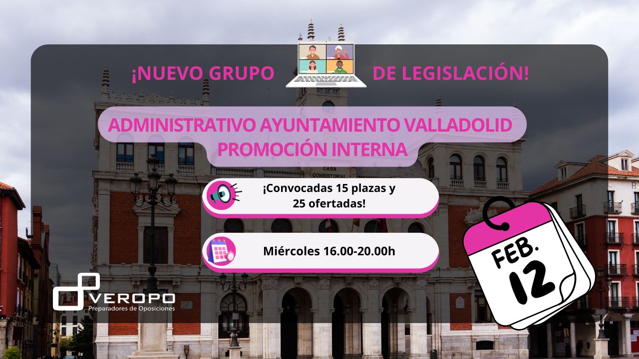 El grupo para preparar Administrativo en el Ayuntamiento de Valladolid comienza el 12 de febrero ¡Hay 15 plazas convocadas! ¡Todo listo para abrir grupo nuevo de promoción interna! Y es que tenemos un escenario perfecto para preparar Administrativo Ayuntamiento de Valladolid por promoción interna, ya que contamos con una Convocatoria de 15 plazas sobre la…