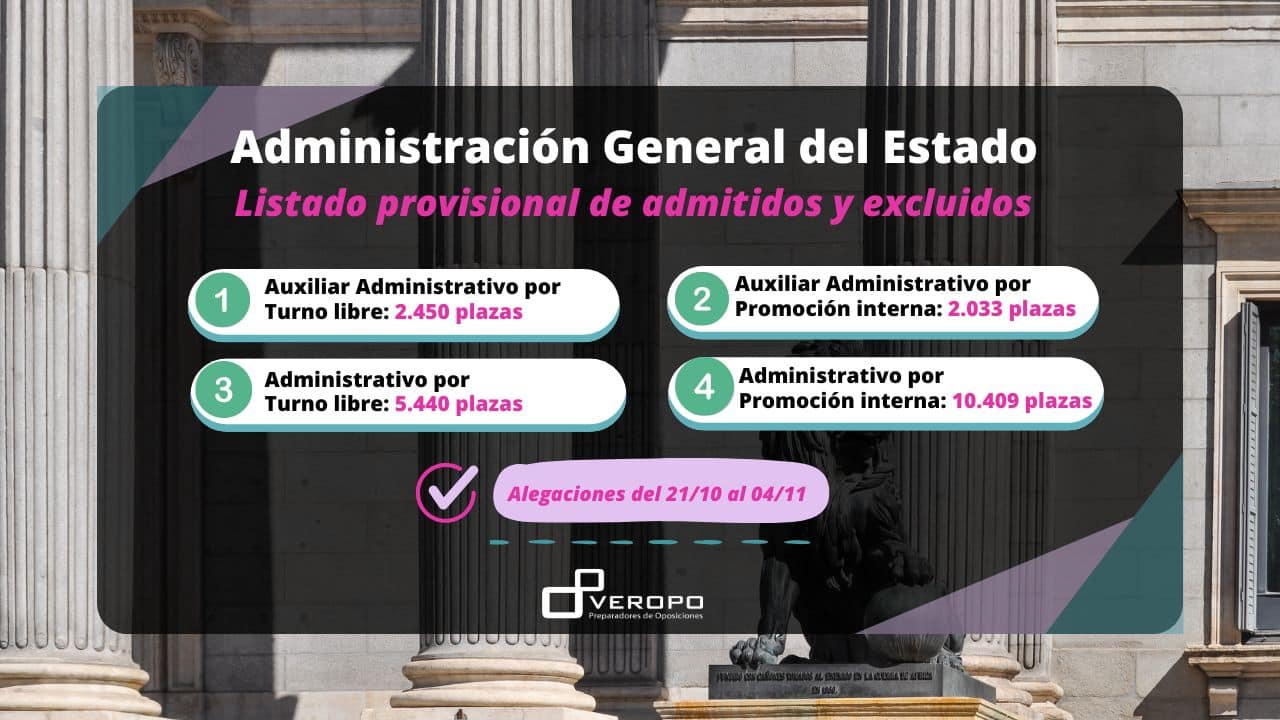 Listado provisional de admitidos y excluidos de Administrativo y Auxiliar Administrativo Estado