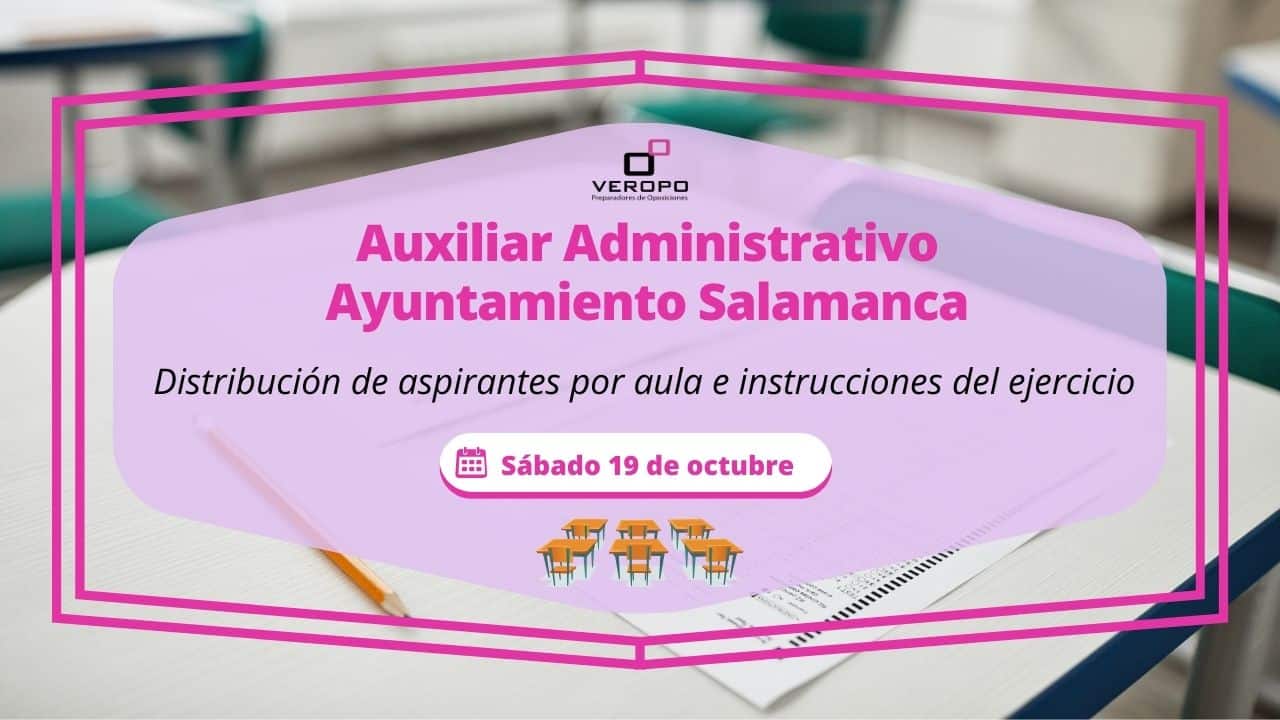 El Ayuntamiento de Salamanca publica la distribución de aspirantes por aula junto a las instrucciones del primer y segundo ejercicio de Auxiliar Administrativo  ¡Empieza la cuenta atrás! ¿Pendiente de conocer todos los detalles sobre la realización del primer y segundo examen de Auxiliar Administrativo en el Ayuntamiento de Salamanca? ¡Pues no pierdas detalle! Y es…