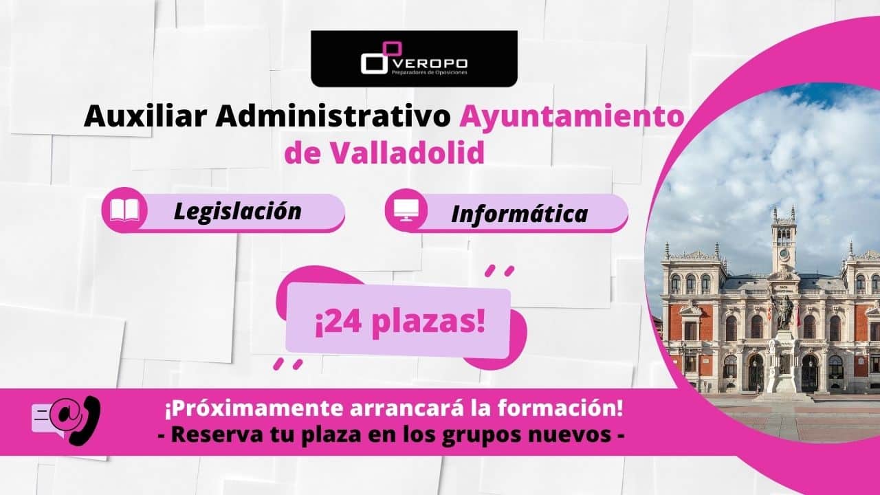 ¿Sabías que hay 24 plazas ofertadas como Auxiliar Administrativo en el Ayuntamiento de Valladolid? ¡No te quedes sin tu plaza y resérvala en los grupos nuevos! ¡Vallisoletano, vallisoletana! Esto es para ti. Porque sabemos que buscas trabajar en tu ciudad, la que te vio nacer y te ha dado siempre tanto. O para todos/as los…