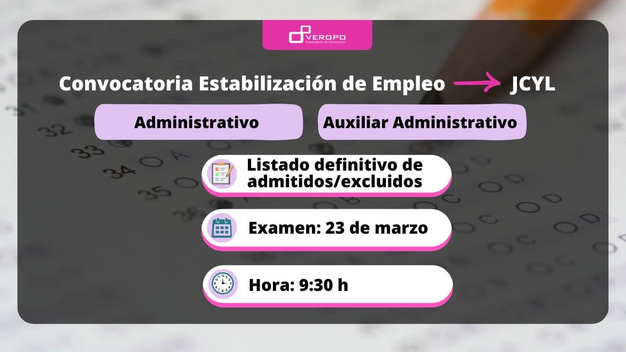 Listado definitivo de admitidos y fecha de examen de Auxiliar Administrativo y Administrativo JCYL Estabilización de Empleo