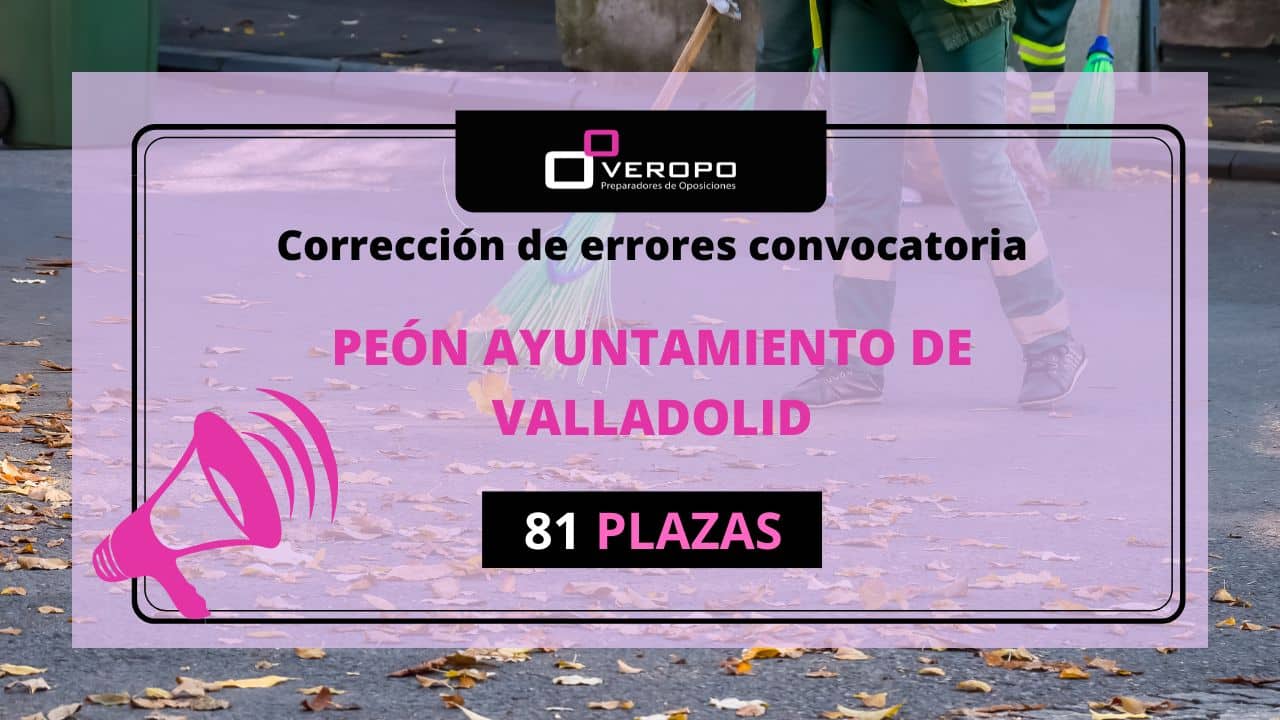 El Ayuntamiento de Valladolid publica una corrección de errores en la convocatoria de 81 plazas para Peón en la que se incluye plazas por el turno de discapacidad ¡Tenemos novedades para Peón del Ayuntamiento de Valladolid! Más concretamente sobre la convocatoria de 81 plazas. Y es que hoy se ha publicado una resolución en la…