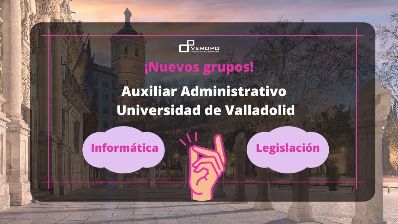 En Veropo tenemos nuevos grupos para preparar la legislación y la informática de Auxiliar Administrativo de la Universidad de Valladolid. ¡Reserva tu plaza! Trabajar en la Universidad.. ¡Qué bien suena! Pues ahora es posible con Veropo. Llevamos años preparando a muchos opositores para conseguir plaza como Auxiliar Administrativo de la Universidad de Valladolid y a…