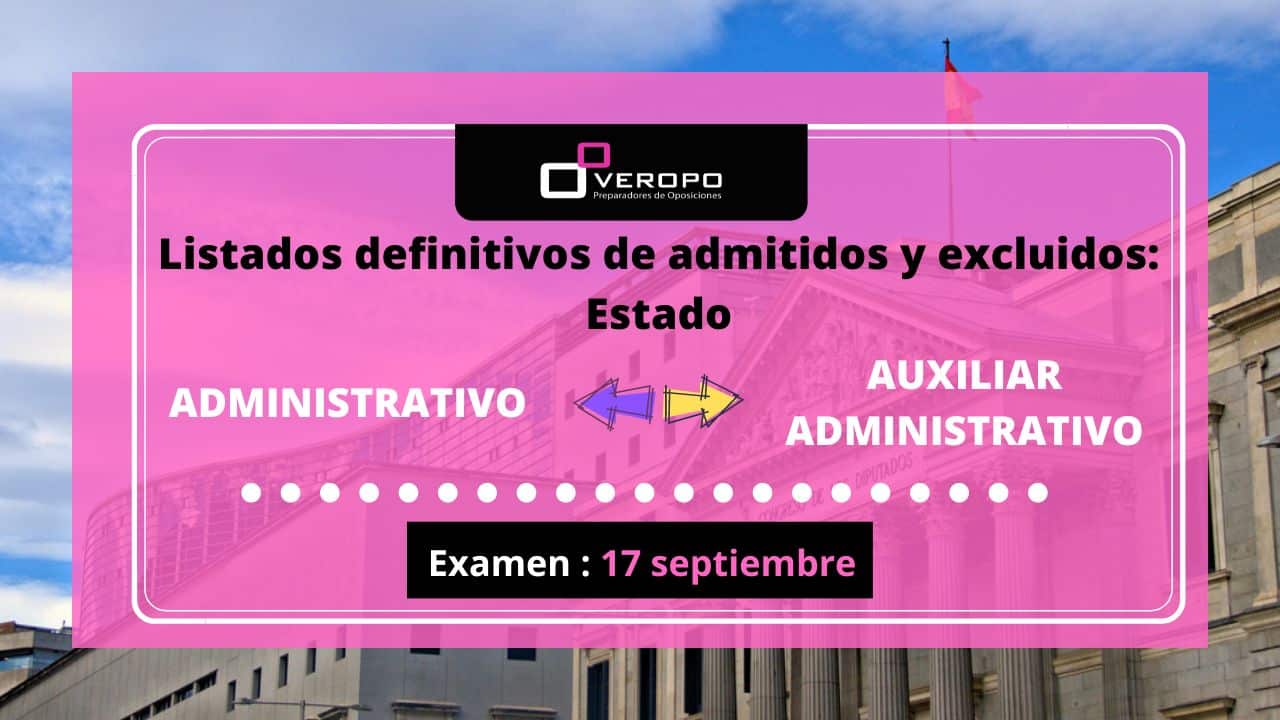 Listado definitivo de admitidos y excluidos de Administrativo y Auxiliar Administrativo Estado