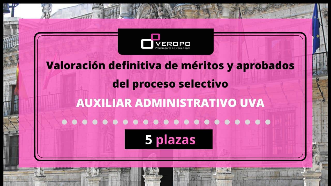 La UVa publica la valoración definitiva de méritos y los aspirantes aprobados del proceso selectivo de 5 plazas de Auxiliar Administrativo ¡Vamos con buenas noticias! Ya os comentamos recientemente la publicación de la valoración provisional de la fase de concurso de Auxiliar Administrativo de la Uva…¡Pues bien! Se ha publicado tras las alegaciones recibidas la…