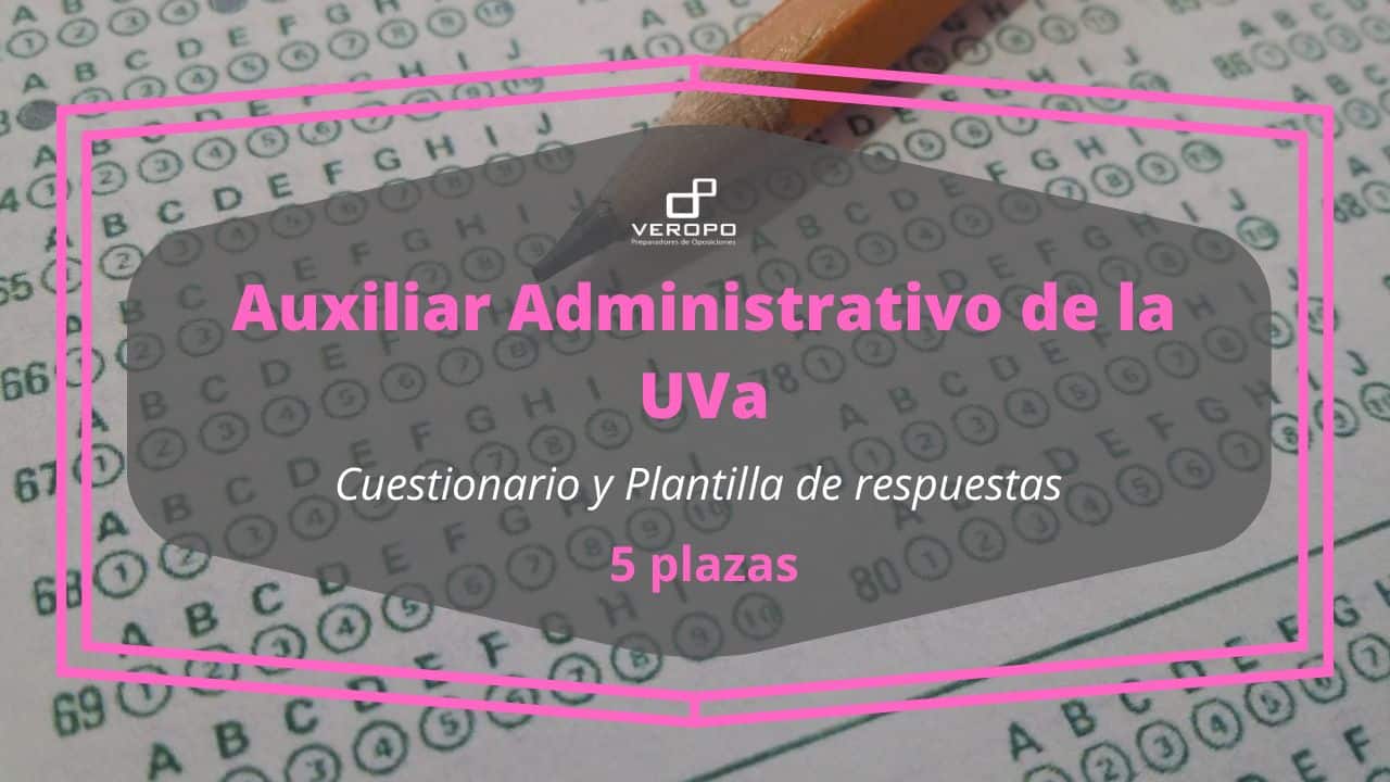 La Universidad de Valladolid publica el cuestionario y las respuestas del ejercicio para lograr plaza como Auxiliar Administrativo de la UVa Una plaza como Auxiliar Administrativo de la UVa, ése es el objetivo de todas aquellas personas que el pasado 13 de mayo se presentaron al ejercicio para lograr una de las 5 plazas convocadas.…