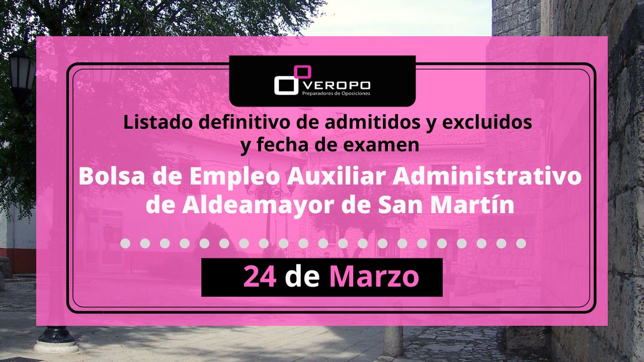 El Ayuntamiento de Aldeamayor de San Martín publica el listado de admitidos y la fecha de examen de la Bolsa de Empleo de Auxiliar Administrativo Estábamos todos pendientes sobre novedades en la Convocatoria de la bolsa de empleo de Auxiliar Administrativo en el Ayuntamiento de Aldeamayor de San Martín… ¡Pues vamos a por noticias! Y…