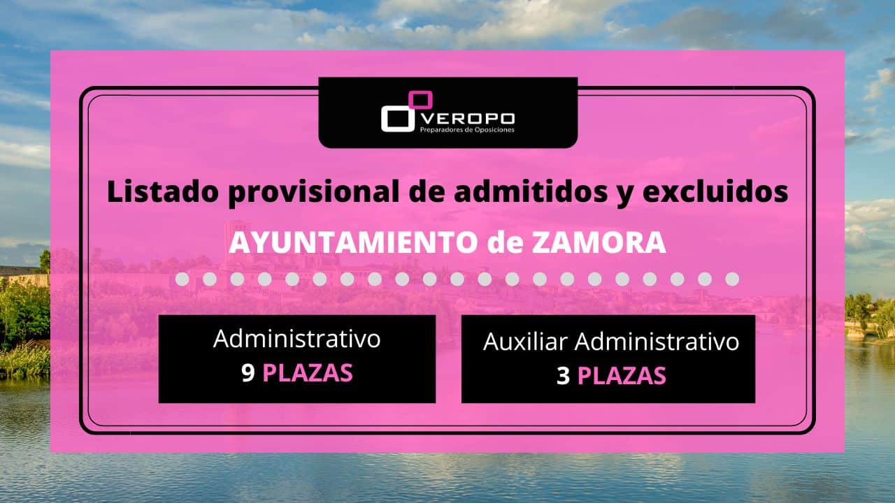 El Ayuntamiento de Zamora publica los listados de admitidos y excluidos para el proceso selectivo de 3 plazas de Auxiliar Administrativo y para las 9 plazas de Administrativo  Hoy es día de ver tu nombre entre listados. Como ya os avisamos, el Ayuntamiento de Zamora publicó la convocatoria de 9 plazas para el cuerpo de…