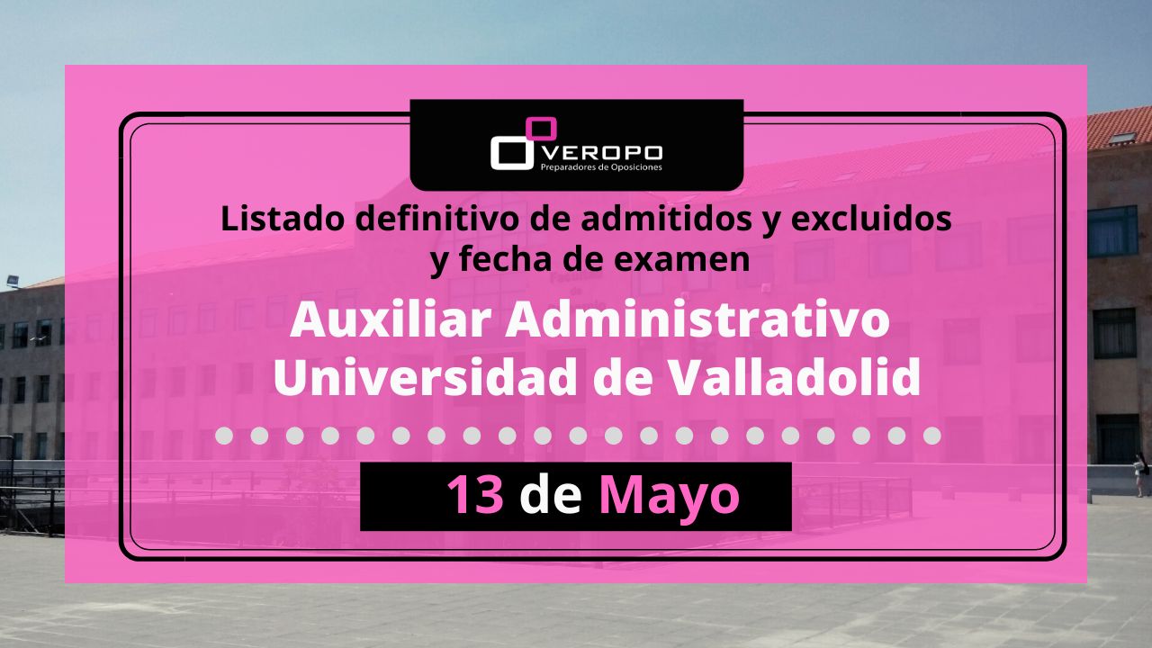 La Universidad de Valladolid publica el listado definitivo de aspirantes admitidos y fija el 13 de mayo como la fecha del examen ¿Quieres una plazas como Auxiliar Administrativo de la Universidad de Valladolid? ¿Presentaste la instancia para la convocatoria de 5 plazas? Si la respuesta a ambas preguntas es en positivo… ¡Revisa ya tu nombre…