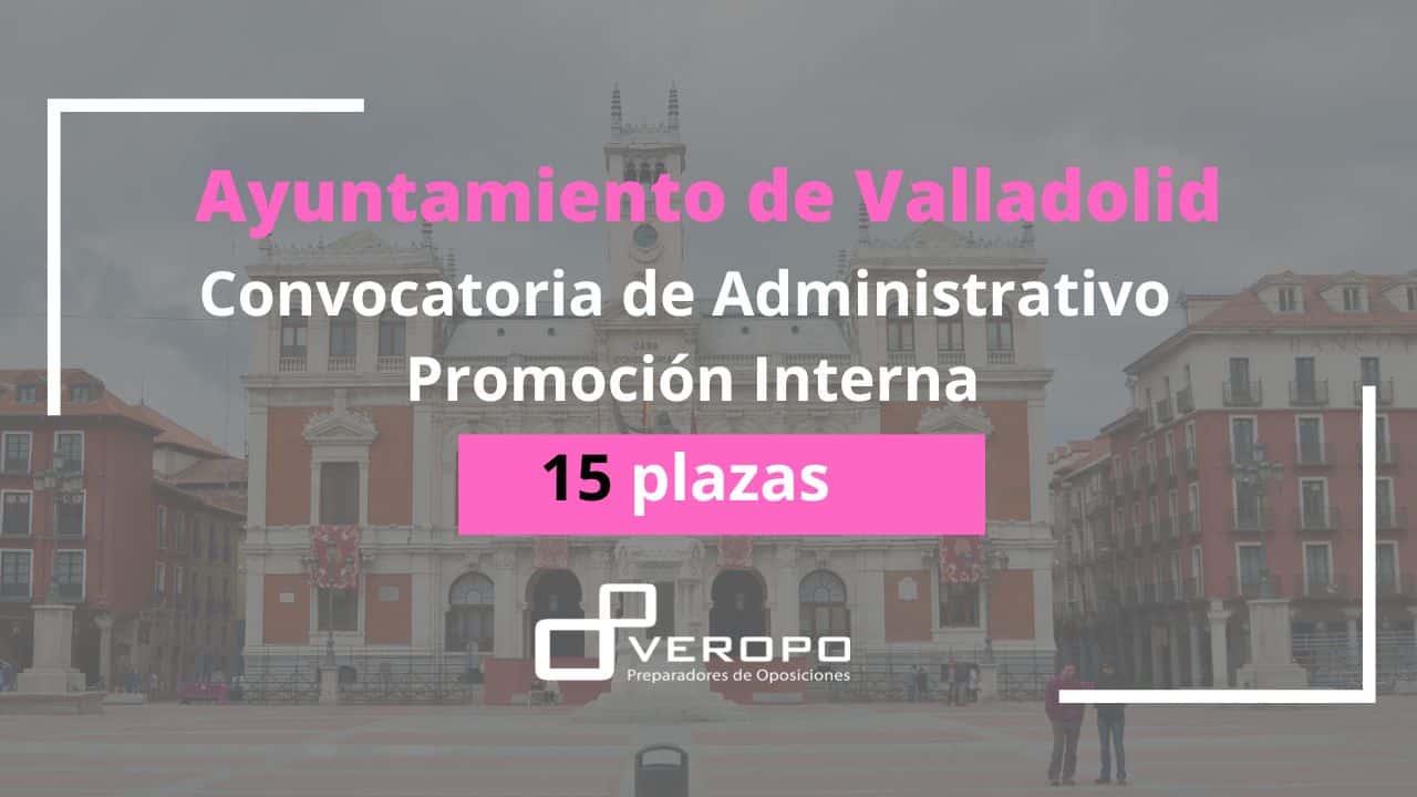 El Ayuntamiento de Valladolid convoca 15 plazas de Administrativo por Promoción Interna referentes a las ofertas del 2019 y 2020  ¡Sumamos otra convocatoria y esta vez en Valladolid! El Ayuntamiento de Valladolid ha convocado 15 plazas de Administrativo del Ayuntamiento por Promoción Interna. Sabemos muy bien que nadie mejor que tú conoce lo que significa…