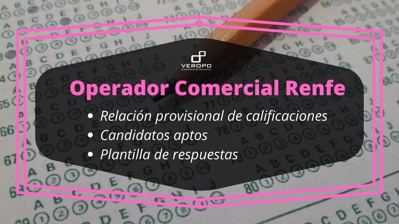 Relación provisional de calificaciones, candidatos aptos y plantilla de respuestas de Operador Comercial de Renfe