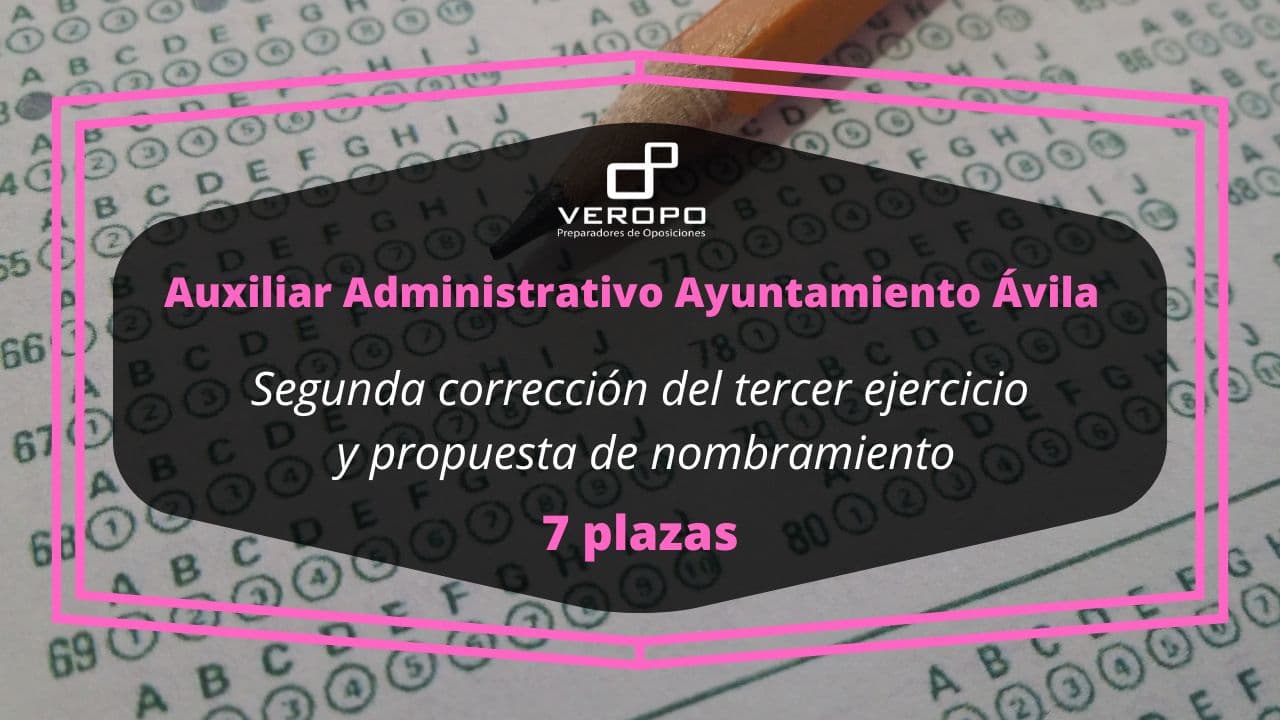 El Ayuntamiento de Ávila publica las alegaciones recibidas del tercer ejercicio de Auxiliar Administrativo y el Tribunal establece la propuesta de nombramiento ¡Fin del proceso de Auxiliar Administrativo del Ayuntamiento de Ávila! El Tribunal calificador ha publicado la respuesta a las alegaciones recibidas tras la primera corrección del  tercer ejercicio publicando también la nueva corrección…
