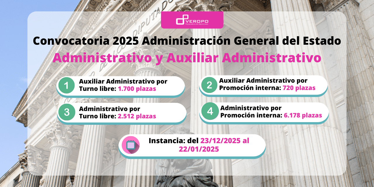 ¡Vamos con Administrativo por Turno libre! Tenemos sobre la mesa 2.512 plazas convocadas (12 de la OPE 2024 y 2.500 de la OPE 2025), de las cuales se reservan 230 para el turno de discapacidad. La titulación exigida será el título de Bachiller o Técnico y las titulaciones obtenidas en el extranjero deberéis acreditarlas con su correspondiente homologación.