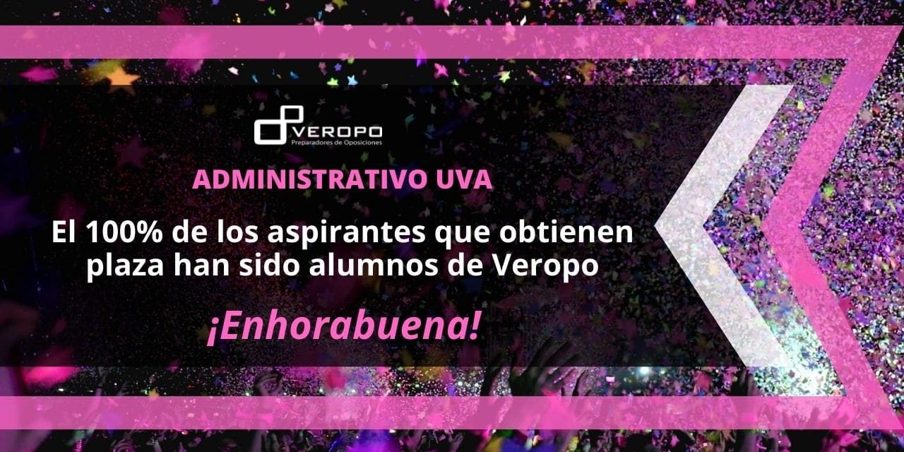 Por otro lado, eran 3 las plazas convocadas de Administrativo de la Uva y la Universidad también ha hecho público el listado de aspirantes que han obtenido plaza en el proceso selectivo. Consulta aquí el listado de aprobados de Administrativo Uva turno libre. ¡Estamos de enhorabuena! Ya que 100% de los opositores que han logrado su plaza han sido alumnos de Veropo. Un orgullo ver como todos vosotros vais llegando a lo más alto con el esfuerzo y la dedicación que tenéis. Recordad que, aún estamos pendientes de las 38 plazas de Auxiliar Administrativo de la Uva y que confiamos ciegamente en vosotros. En que seguiréis luchando por conseguir la plaza que tanto queréis en la Universidad de Valladolid. ¡Enhorabuena a todos y mucho ánimo con el estudio de Auxiliar Administrativo en esta recta final!