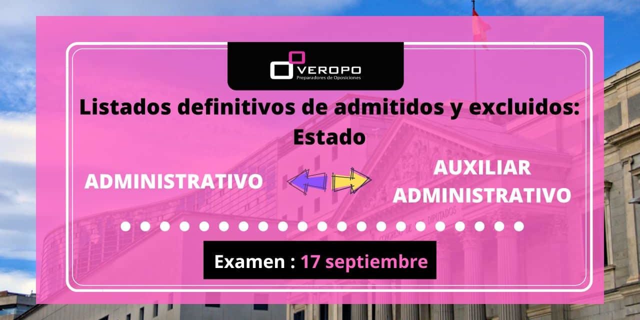 Listado definitivo de admitidos y excluidos de Administrativo y Auxiliar Administrativo Estado