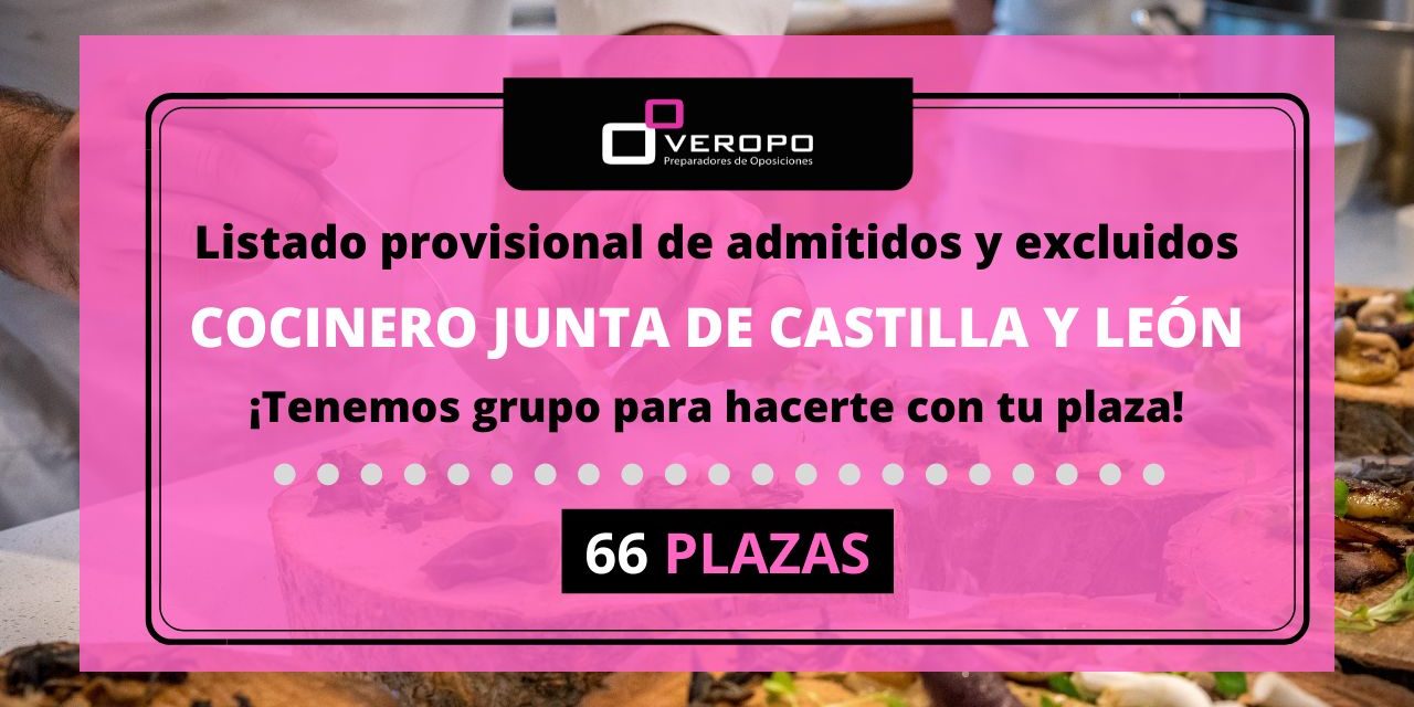 La Junta de Castilla y León publica el listado provisional de admitidos y excluidos de la Convocatoria de 66 plazas de Cocinero ¡Tenemos un grupo para hacerte con tu plaza!