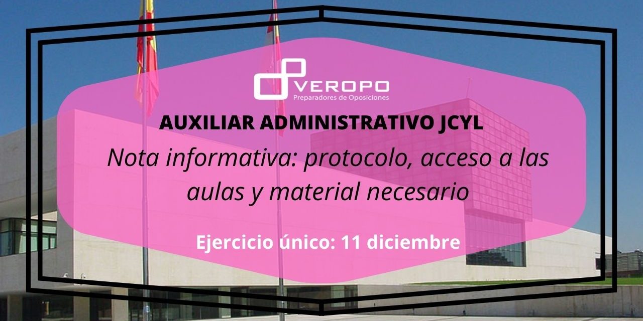 El día 11 de diciembre es el día más repetido en las conversaciones de los opositores y un día muy importante para todos. ¡Tenemos novedades al respecto! Y es que la JCYL ha publicado una nota informativa indicando nuevas directrices para la realización del ejercicio único de Auxiliar Administrativo. En primer lugar, todos los aspirantes debéis leer y adoptar las medidas necesarias para evitar el contagio y la propagación de la COVID-19. Para ello, debéis leer con detalle el Protocolo de adaptación a la nueva situación originada por la pandemia COVID-19 para la celebración de las pruebas de los procesos selectivos.
