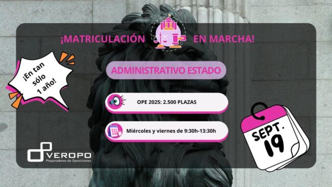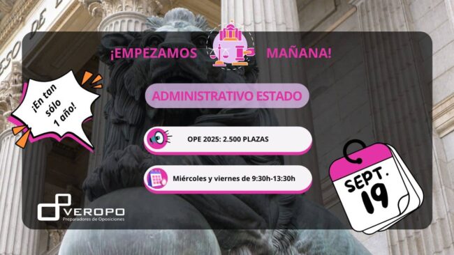 Abrimos grupo de legislación para preparar Administrativo Estado en tan sólo un año el viernes 19 de septiembre ¡Reserva tu plaza! ¡La AGE coge impulso! Ahora que tenemos la OPE 2025 sobre la mesa sabemos con 2.500 plazas para el cuerpo de Administrativo del Estado (C1) sabemos que la Convocatoria está al caer. Así que,…