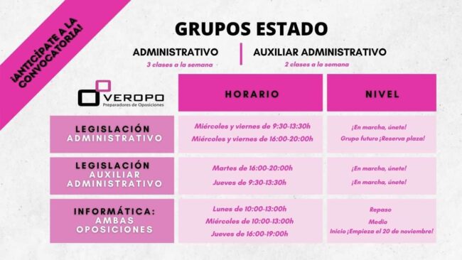 Mañana comenzamos grupo para preparar la legislación de Administrativo Estado en tan sólo un año ¡No te quedes sin tu plaza! ¡Que emoción! Y es que tienes la oportunidad de empezar mañana con la preparación del grupo nuevo de legislación de Administrativo Estado adaptado al 100% para que puedas ver en tan solo un año…