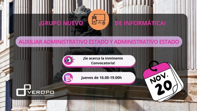 Prepara la informática de Administrativo y Auxiliar Administrativo del Estado con el grupo nuevo que comienza el jueves 20 de noviembre ¡Llega la inminente Convocatoria! ¡Lo bueno se hace esperar! Y es que estamos esperando que llegue la Convocatoria de la Administración General del Estado antes de que acabe el año. ¿Cuántas plazas van a…