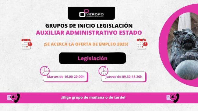 ¡Abrimos grupo de legislación de Auxiliar Administrativo Estado el 18 de febrero!