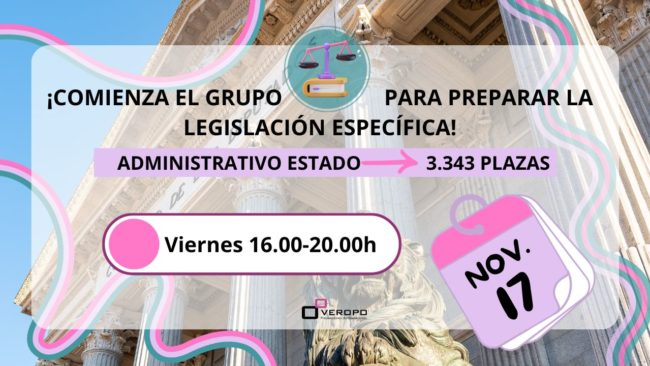 ¿Quieres una de las 3.343 plazas ofertadas como Administrativo del Estado? ¡El grupo de legislación específica comienza el 17 de noviembre! 3.343 plazas sobre la mesa y todo preparado para dar comienzo con el grupo de legislación específica de Administrativo del Estado. Empezamos de cero con la formación el próximo viernes, 17 de noviembre, en…