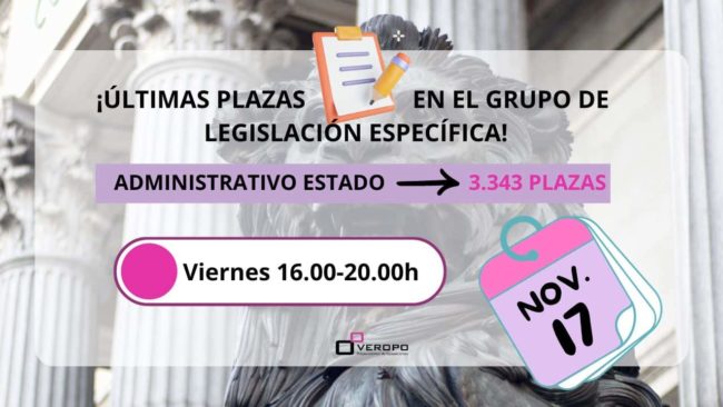 ¡Últimas plazas en el grupo de legislación específica de Administrativo Estado!