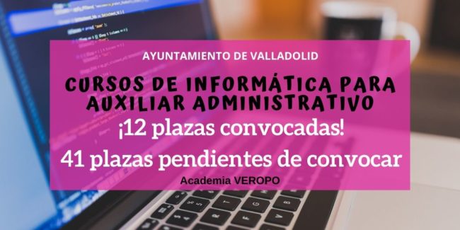 Prepárate en Veropo y consigue una de las 12 plazas convocadas como Auxiliar Administrativo El Ayuntamiento de Valladolid convocó 12 plazas de Auxiliar Administrativo por Turno Libre y ahora que está próximo el examen, te recordamos que en Veropo disponemos de varios cursos para su preparación. ¡No pierdas esta oportunidad! PLAZAS CONVOCADAS Turno Libre Estabilización…