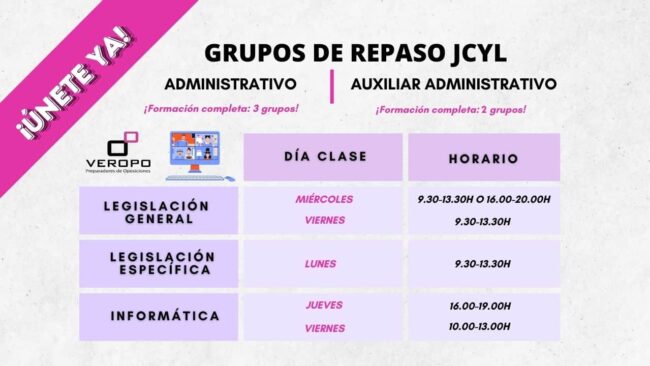 ¿Aún no estás repasando el temario de Administrativo y Auxiliar Administrativo JCYL? ¡Elige grupo!