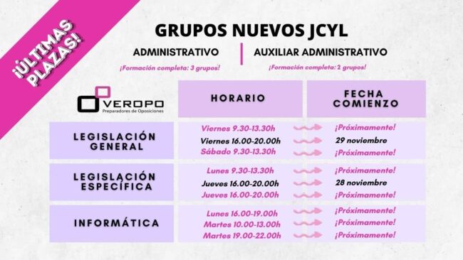 ¡Grupos nuevos de inicio para Administrativo y Auxiliar Administrativo JCYL!